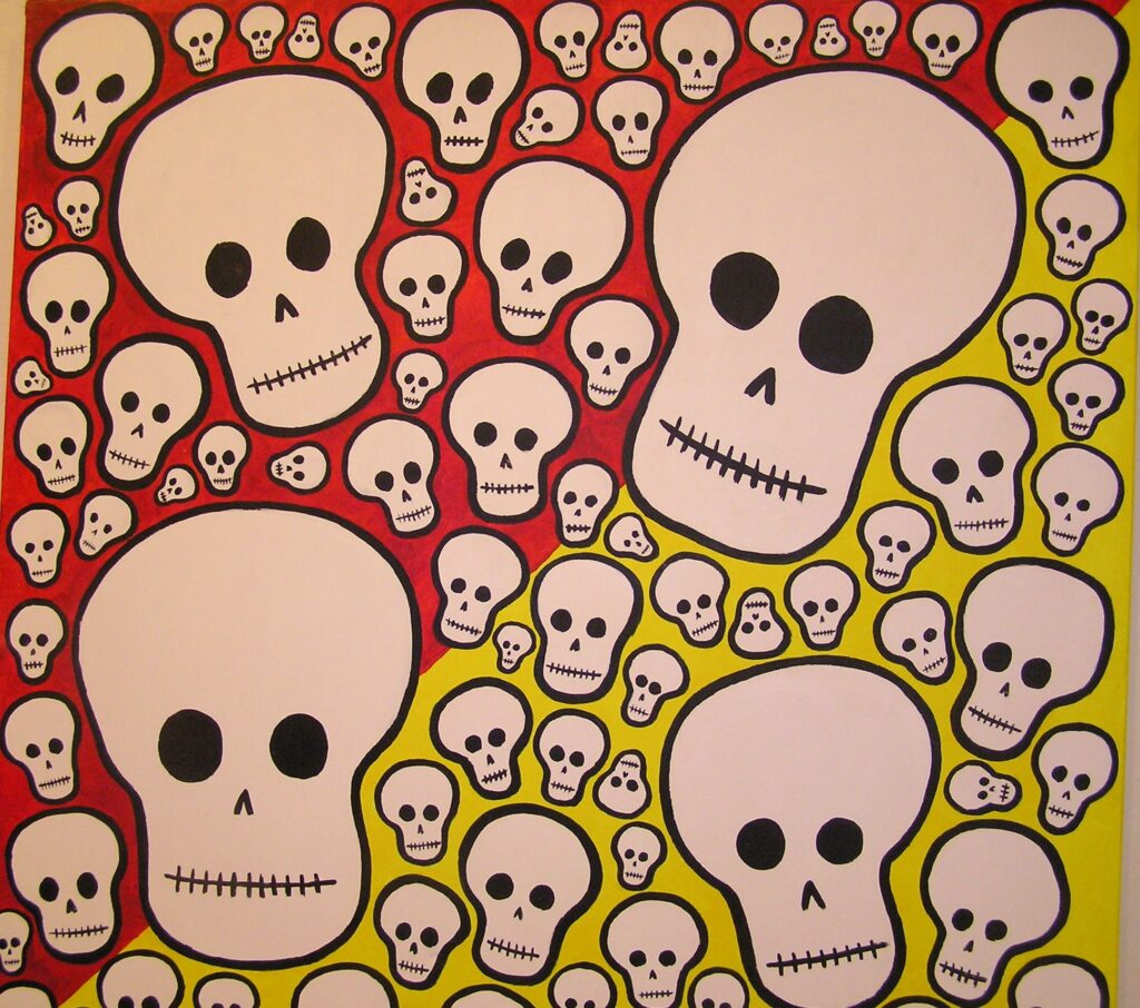 Dia de los Muertos Skulls 48×48 SOLD